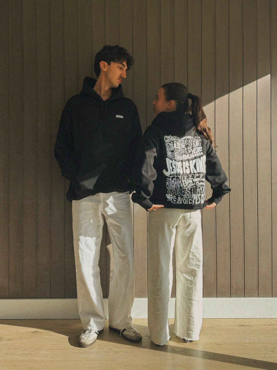 I originally designed the Jesus is King hoodie for a small release of merch for an event at my church, but after sharing the progress of the design and the final product on my Instagram page, it became clear that this hoodie was too powerful to keep to ourselves. there was so much interest that I went on to ordering a restock and setting up an online store to sell it. and when that sold out, Zion was born.